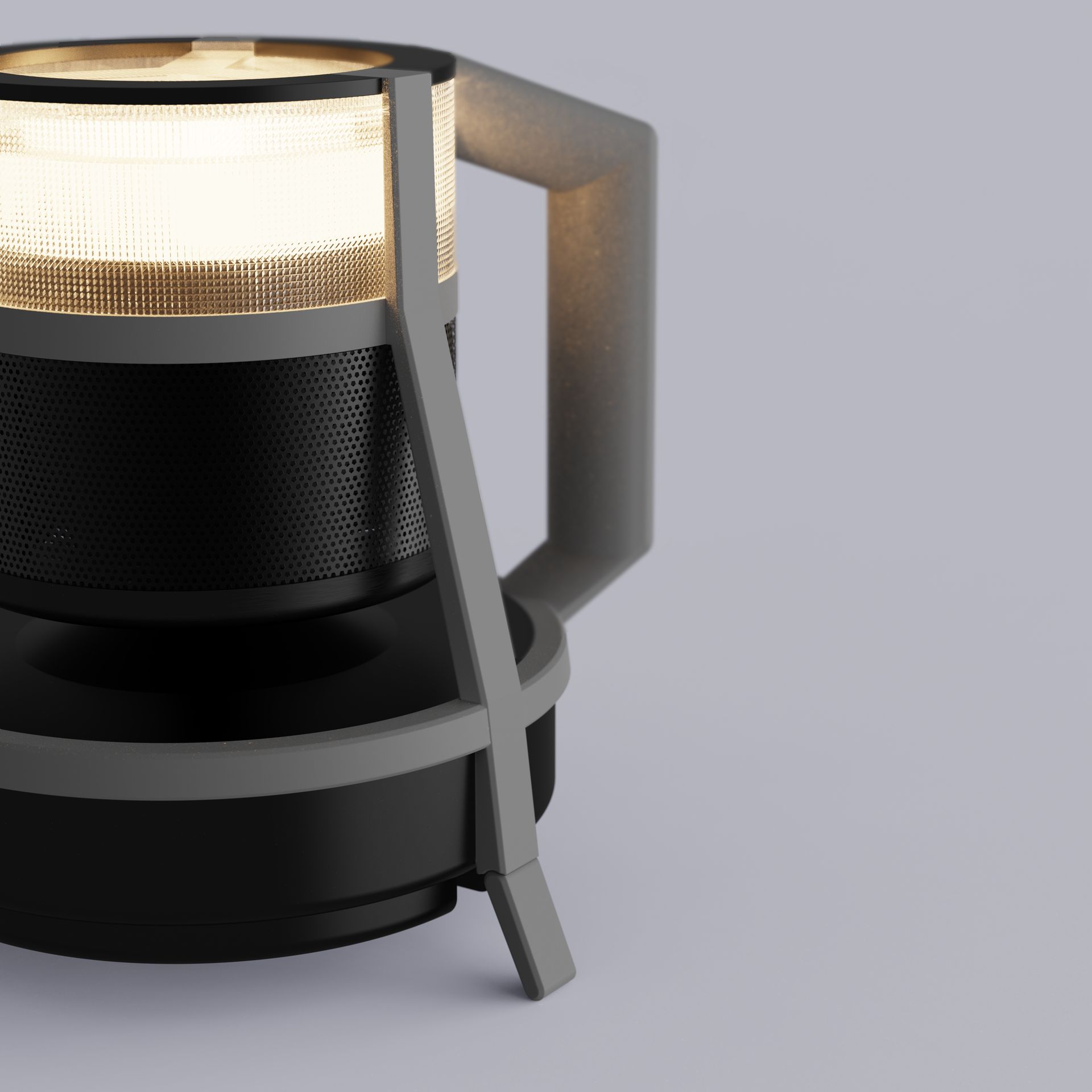 ButtonA set of battery-powered crisis tools: heater, lamp-speaker, and kettle, designed for reliability and versatility, mentored by Tatic Designstudio